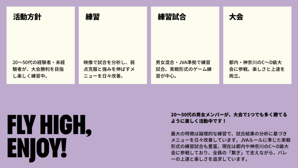 私たちは、バレーボールを通じて地域コミュニティを活性化し、誰もが輝ける場所を目指しています。